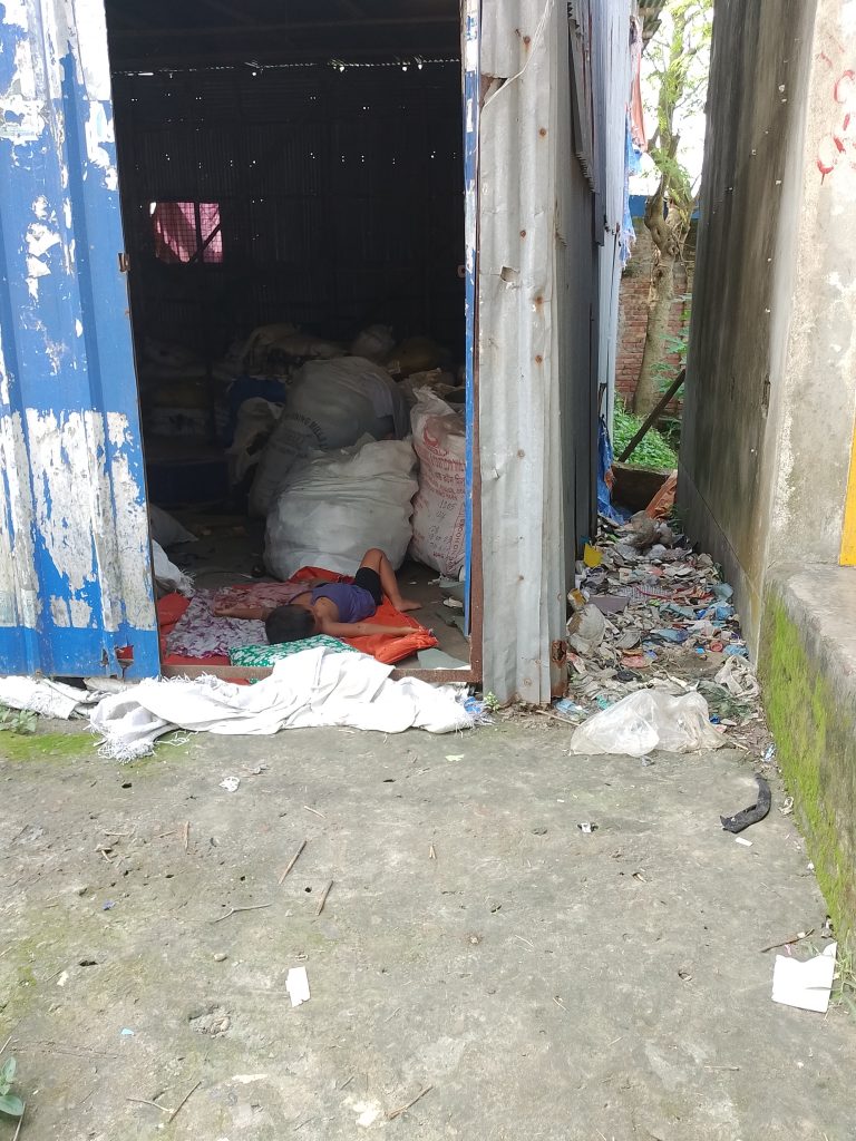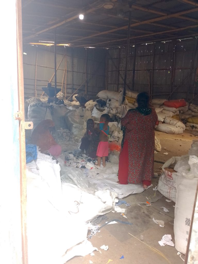 যেখানে 40-50 বয়সের শ্রমিক,ভোটার আইডি কাডের্র সমস্যা, বাচ্চা রাখার সমস্যাসহ অনেক শ্রমিকদের কর্মসংস্থান হয় ,বিভিন্ন গোডাউনে ঝুট বাছাই করা।কম মজুরী সারাদিন কাজ করে 150-200 টাকার কাজ,ধুলার মধ্যে কাজ যা উপার্জন হয় ,সংসারে খরচ চালানো কষ্ট ,শারীরিকভাবে নিজের ,বাচ্চার,শ্বাস কষ্ট হয়। তার খরচ কই পাই।সমাজে সবার কথা ভাবা উচিৎ,গোডাউনের কাজ করা শ্রমিকরা ও তো মানুষ।এখান থেকেও উপার্জন করে ঝুট মালিকরা । তাদের ভাবা উচিৎ এ সকল ঝুট মালিকদের।